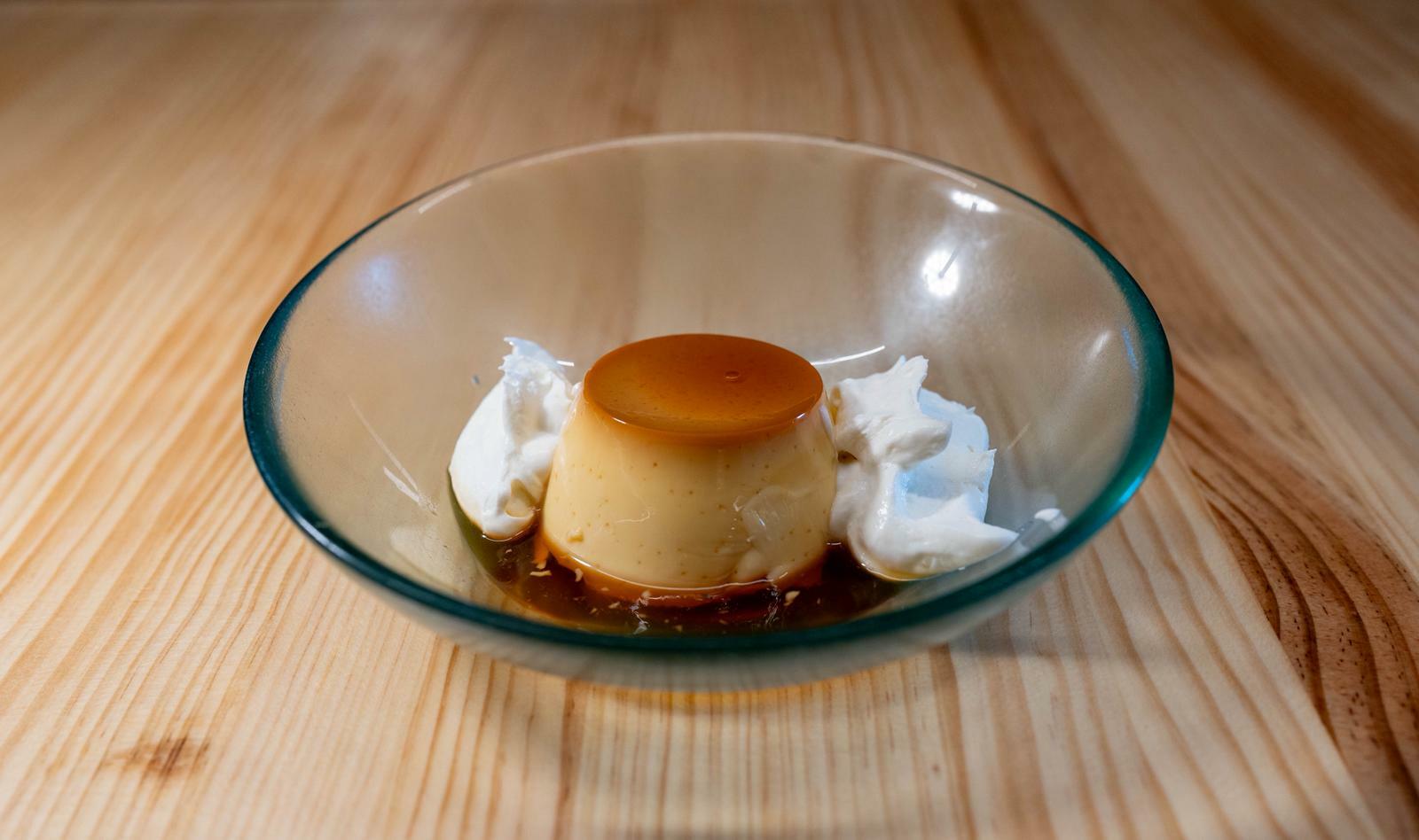 Un flan casero, suave y cremoso, elaborado con leche fresca de oveja manchega y huevos camperos, que aporta un sabor intenso y auténtico. Una reinterpretación del postre tradicional que rinde homena